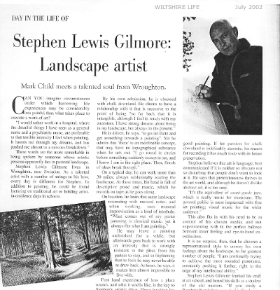 2011 Stephen Lewis Gilmore won a Wiltshire Life Award in the category of Artist/Musician of the year.