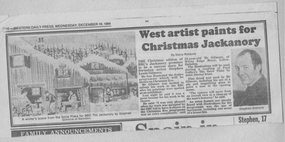1982 Art commission by the BBC to illustrate Paul Gallico’s book ‘The Little Snowflake’ for Children’s programme Jackanory, narrated by Jeremy Irons.